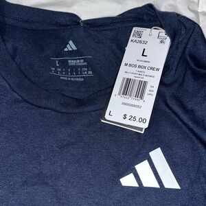 New Blue Adidas Big Logo Box Print Cotton Short Sleeve T-Shirt Sz L NWT