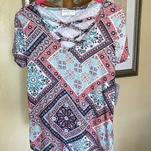 New and perfect condition boho patterned top whither caged front. Love, love the beautiful colors!