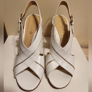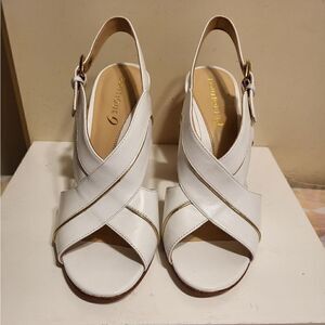 Boutique 9 White Leather Criss Cross Strap Block Heel Sandals