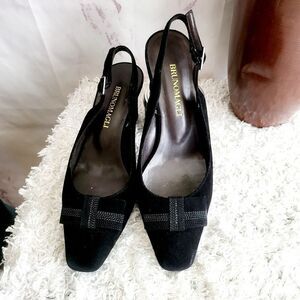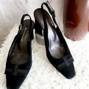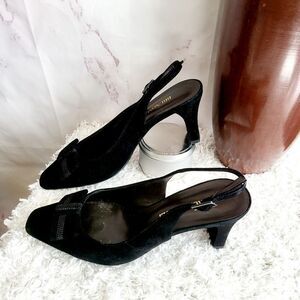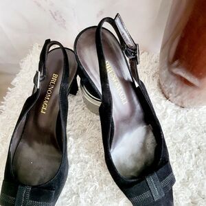 Excellent condition no flaws brand new never worn Bruno Magli black velvet slingback heels with adjustable strap. Size 38 or 7.5