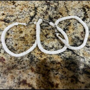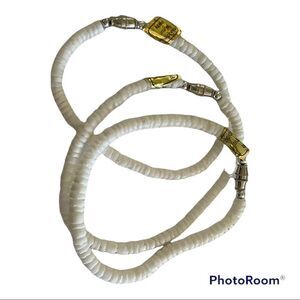 New puka shell bracelets made in the Philippines by hand! For one price, you get all three for a layered look. Approximately 7” in length.