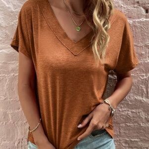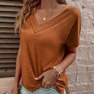 New Burnt Orange Cozy V neck Dolman Sleeve Loose Fit Top