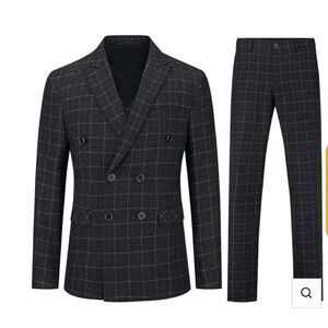 New CLOUD STYLE Slim Fit Double Breasted Suit Plaid Yellow Suit 3-Piece