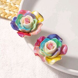 New COLORFULL ROSE stud earrings fun whimsical kawaii