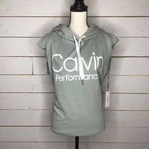 New Calvin Klein Boxy Cropped Logo Terry Hoodie