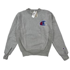 New Champion Men Grey Sweatshirt Crewneck Long Sleeve Pullover Logo US XS
