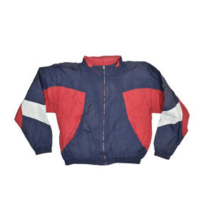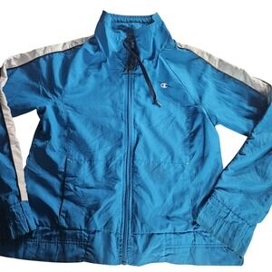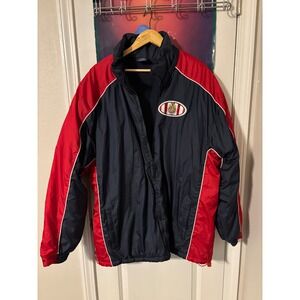New Champion Men Navy Blue Full Zip Jacket Sport Athletic Red Cuffs Logo US XS
