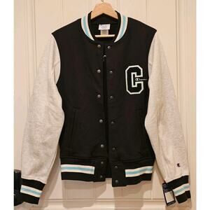 NWT (New With Tag) Champion Men Navy Blue Full Zip Jacket Sport Athletic Red Cuffs Logo US XS MSRP $65