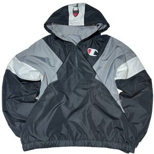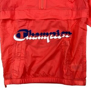 New Champion Men Unisex Red Anorak Hood Windbreaker Long Sleeve Pullover US XS