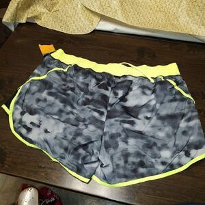 New champion duo dry shorts size women's XXL. They are gray and bright yellow inner brief wicks moisture key pocket inseam 3 1/2 inches.