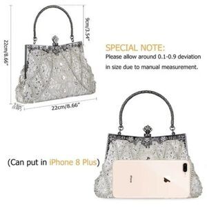 DIMENSIONS: Clutches: 8.66"(L) * 2.95"(W) * 5.91"(H), Handle Drop: 2.75", Vintage Beaded Clutch comes with 47.24" long chain removable.
