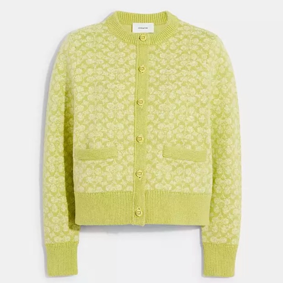 Add Coach’s Signature to your style with this cozy cotton-blend crewneck cardigan. A great layering piece, the classic-fit style is woven with Coach iconic Signature and finished with Coach buttons.