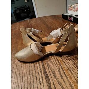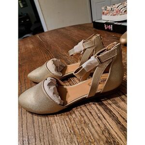New Comfortview Paris Gold Flat Dress Shoes 8.5M Ankle Strap Metallic