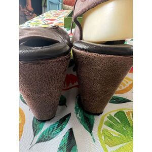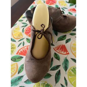 These are wonderful brand new shoes from Cordani made in Italy. These are a wedge heel with a back buckle and a front lace so cute! These retail in the $300 range bought them for myself, but they’re way too high for me. They do have some marking on the bottom from when I bought them otherwise they are unworn. They’re actually quite comfortable beautifully made. Slightly out of shape from being in my closet for a while.
