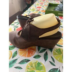New Cordani Brown Suede Wedge Heels W/laces & Buckle 39