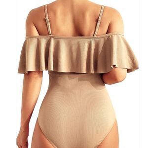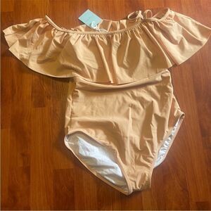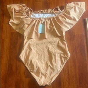 Cupshe ruffle swimsuit color nude. Cute and comfortable swimsuit with adjustable and removable straps. Comes from a clean and smoke free environment.