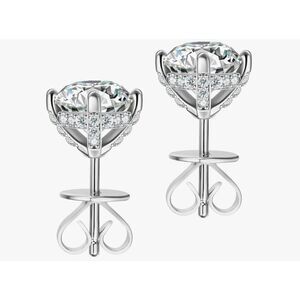 The infinity circle necklace is 1/2" in diameter and has .10 carats of gemstones. It is 18" in length and closes with a Lobster Claw clasp closure. The round cut stud earrings are .20 carats total with post back closures. Both pieces are done in 925 solid sterling silver and are stamped for authenticity. They also have the Diamonique brand stamp as well.