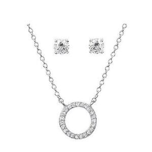 New~DIAMONIQUE Small Infinity Circle Necklace & Stud Earring Set~925 Sterling