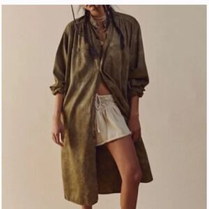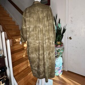 Dr. Collectors Gala Dress. A unisex, oversized, Dress/Shirt Hybrid. Shirt style hem. Long Sleeves, 8 buttons and a single button cuff. Two oversized pockets across chest, two side seam pockets. Made in Los Angeles.