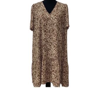 A New Day Swing Dress, Pull-over, Short sleeves, Ruffle hem V-Neck. Approx measurements Pit to Pit 23", Length 35"