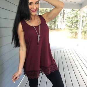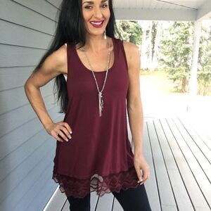 New Deep red sleeveless lace accent tunic