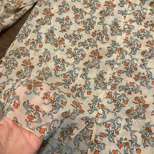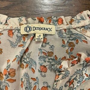 New Democracy Floral Sheer High Low Button Up Top