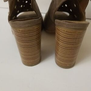New Direction (Hayden) taupe colored heeled sandals. Size 9.