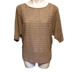 New Directions Tan Scoop Neck Short Dolman Sleeves Tight Knit Sweater XL