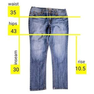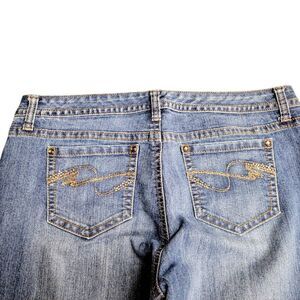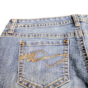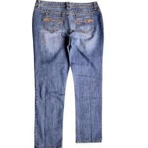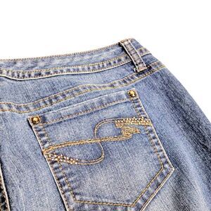 New Directions Weekend Rhinestone Sequin Embroidered Pocket Straight Blue Jeans