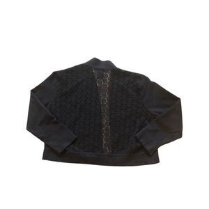 Cute New Directions Cardigan! Black cardigan, 3/4 length sleeves, waist length. Features crochet detail on the back. Cardigan is in good used condition, no stains or damaged fabric, some pilling from normal wash and wear. Cotton/nylon blend. Size L.