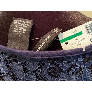 New Directions Women's Navy Large Top with Lace Neck and Sleeves
