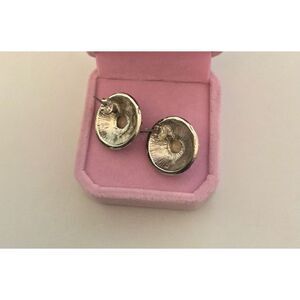 Elegant and comfy too! At 3/4” in diameter, these button style earrings are done in a two tone 18k yellow and white gold plate finish with a pretty bead design. A beautiful simulated round mabe Pearl gemstone sits in the center. They have butterfly post back closures. Looks great with both a formal evening gown as well as your favorite pair of jeans/