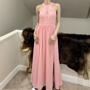 New Elegant Floral Lace Halter-neck Chiffon Dress