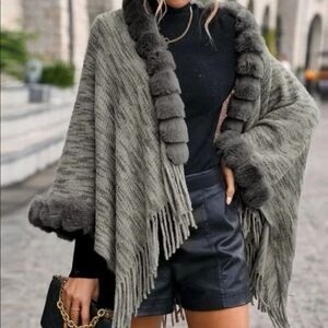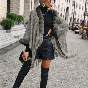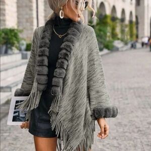 New Elegant Fringe Trim Batwing Sleeve Cardigan