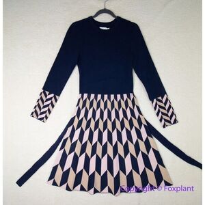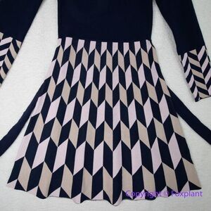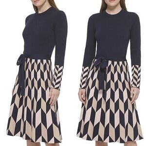 New! Eliza J Tied Geometric-Skirt Fit-&-Flare Dress, size M