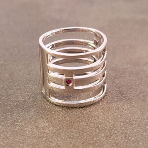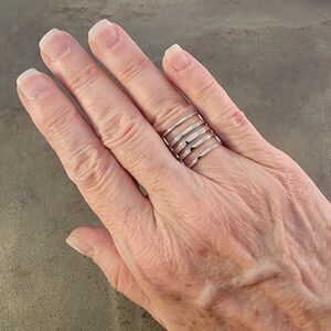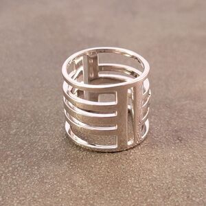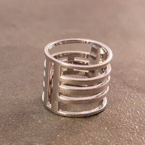 New Elle Sterling Silver Modern Openwork Bands Statement Ring