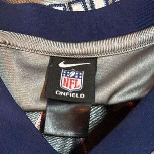 SPOTS on front. I did not wash to see if they would come out. Just used Fabric Sanitizer. New England Patriots TOM BRADY On Field Nike Salute to Service NFL Football Jersey. Size tag faded off. It’s at least an XL.