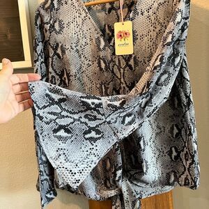 New Entro | Women’s Snake Print Bell Sleeve Top Small