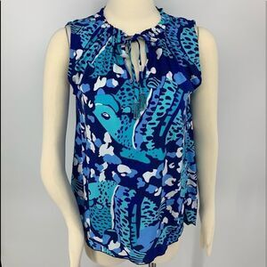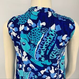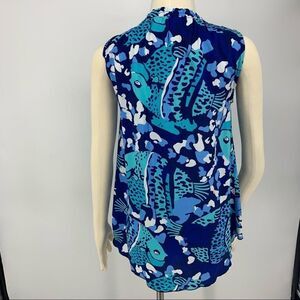 New Escapada Living Aegean Blue Fish Print Drawstring Neck Casual Beach Top [xs]