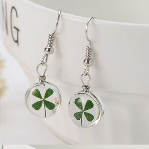 New FOUR LEAF CLOVER GLASS DANGLE EARRINGS ST PATRICK'S DAY