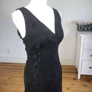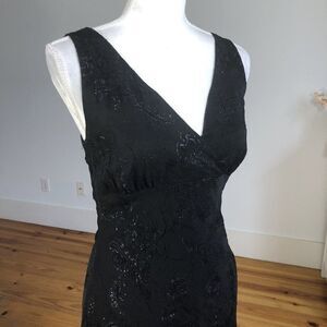 Beautiful Brand NEW with tags black sparkle evening dress. Night out/date night/dance. Sleeveless surplice sheath with empire waist. Very pretty. New, no flaws. 9 A little stretch.