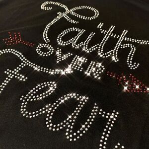 New Faith over Fear Rhinestone T-shirt Black with Red and Silver Soft Stretchy