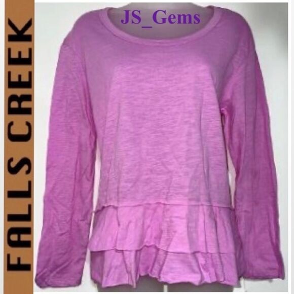 New Falls Creek Top Womens Medium Bright Pink Ruffle Hem Long Sleeve