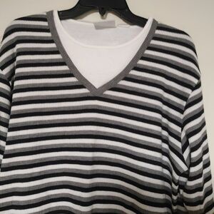 New Fashion Bug Gray Black White Striped Thermal Look Top Size Women's XL