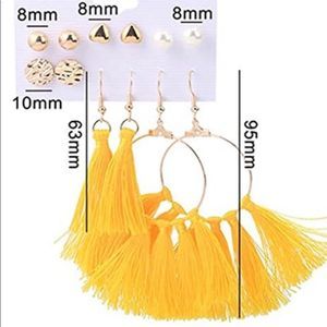 New Fashion Earrings 6 Pack Gold & Yellow Post & Stud / Hoop Earring Set