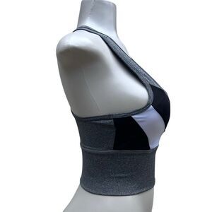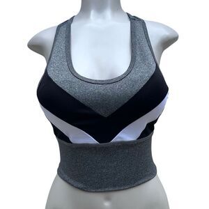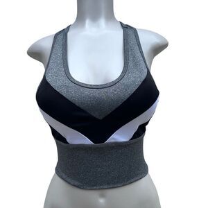 New Fashion Longline Athletic Sports Bra Women's S/M Gray Black Colorblock Racerback