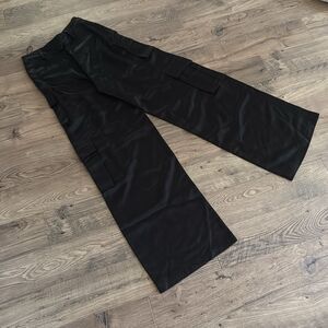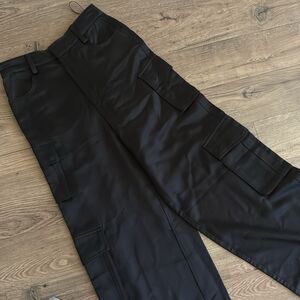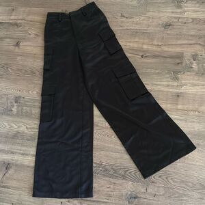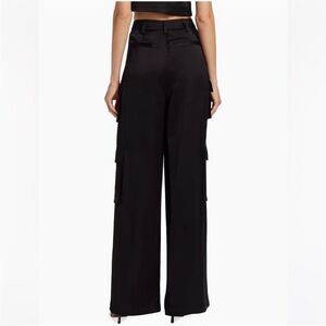 New Favorite Daughter Satin Cargo Pants Wide Leg High Rise Black Sz 0
