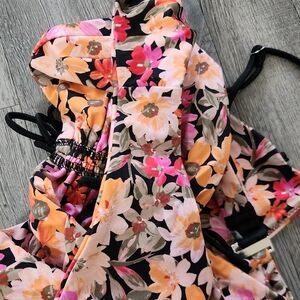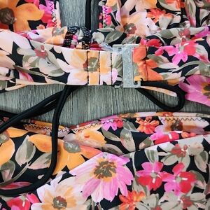 Stylish floral cutout swimsuit with vibrant colors. Perfect for beach days.