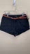 Black shorts with brown belt, pockets, 97% cotton and 3% spandex.