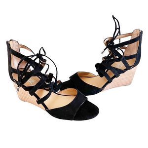 New Franco Sarto Size 6 Black Lace Up Wedge Sandals